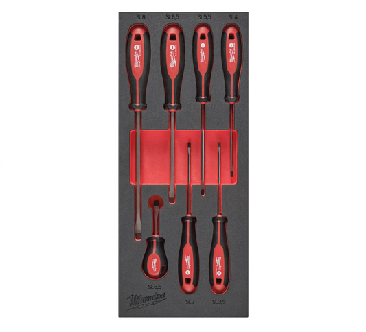 Foam with 7 Milwaukee Flathead Screwdrivers