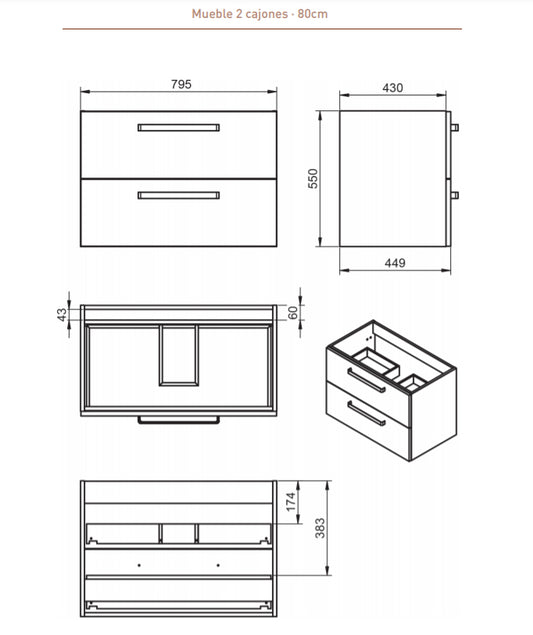 Conjunto de Baño Mueble VEGA + Encimera 80 COLORS Avio VisoBath