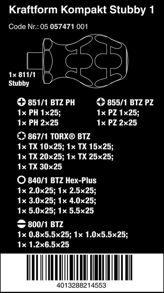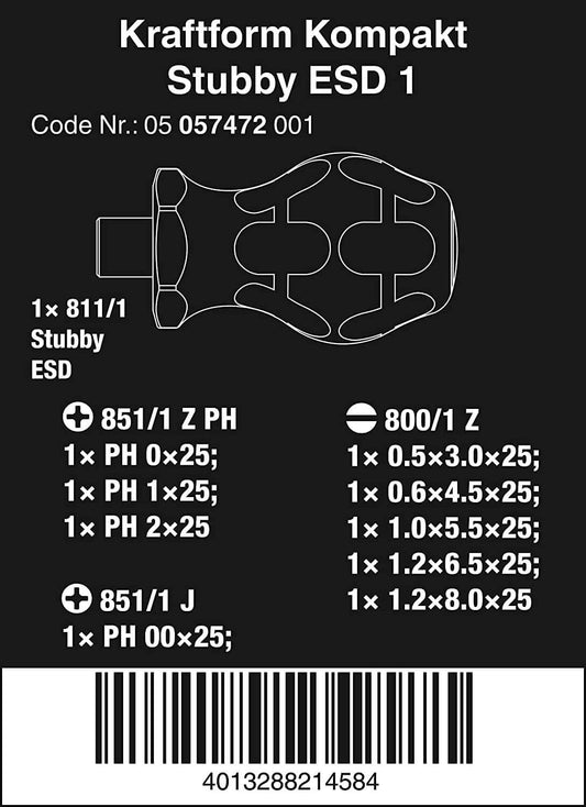 Juego 9 puntas 25mm con porta-puntas Wera Kraftform Kompakt Stubby ESD 1 ref.057472