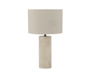 Lámpara decorativa Glow de Andrea House con base de travertino natural y pantalla de lino beige, diseñada para crear una luz suave y ambiental en salones, dormitorios o espacios de lectura. Su estética orgánica aporta calidez visual y textural a cualquier rincón del hogar.