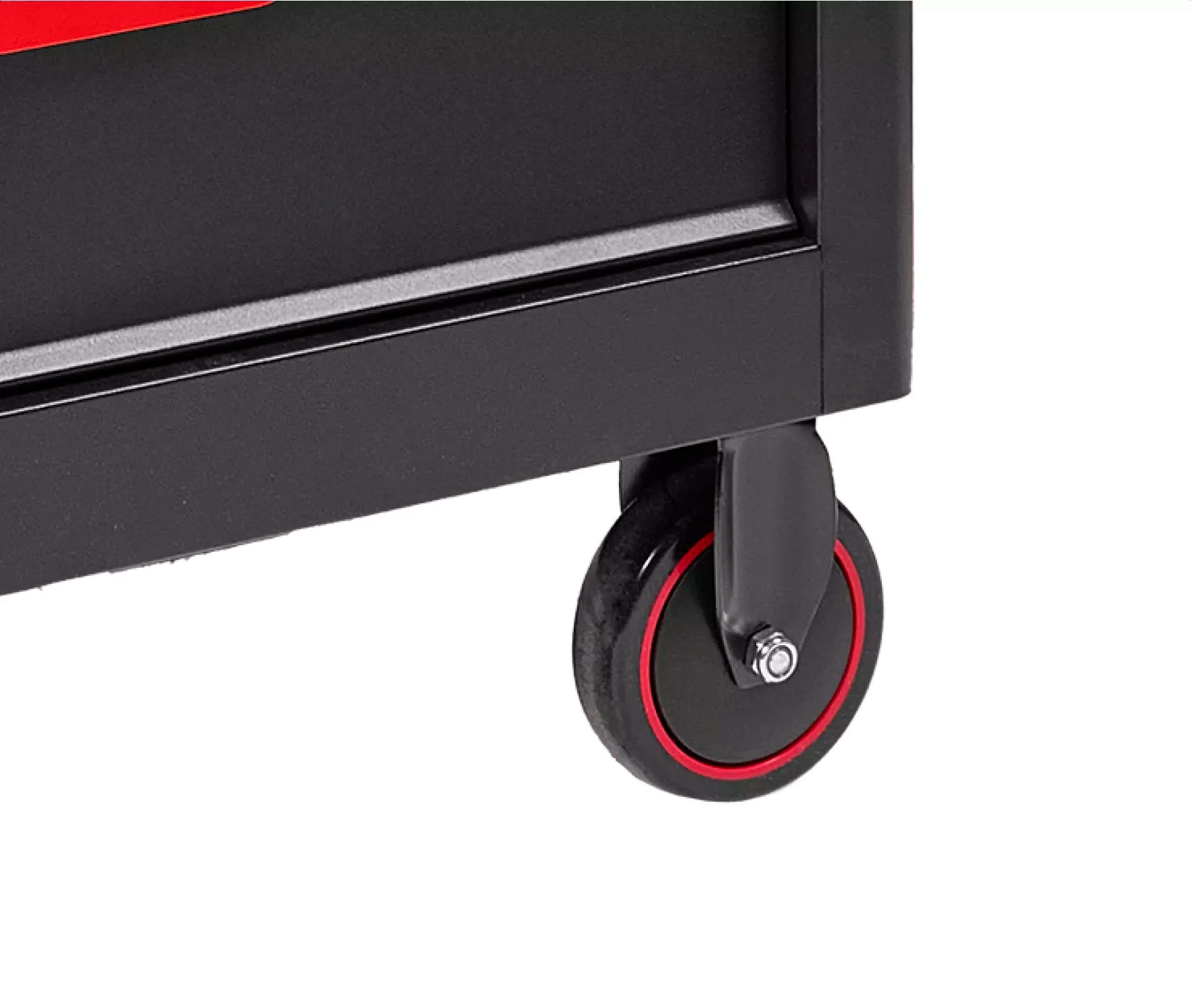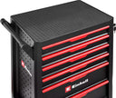 Sturdy, mobile storage cart, ideal for organizing tools and accessories in home or professional workshops. Presented without tools, it offers a solid black structure with red accents, with six drawers for maximum versatility.