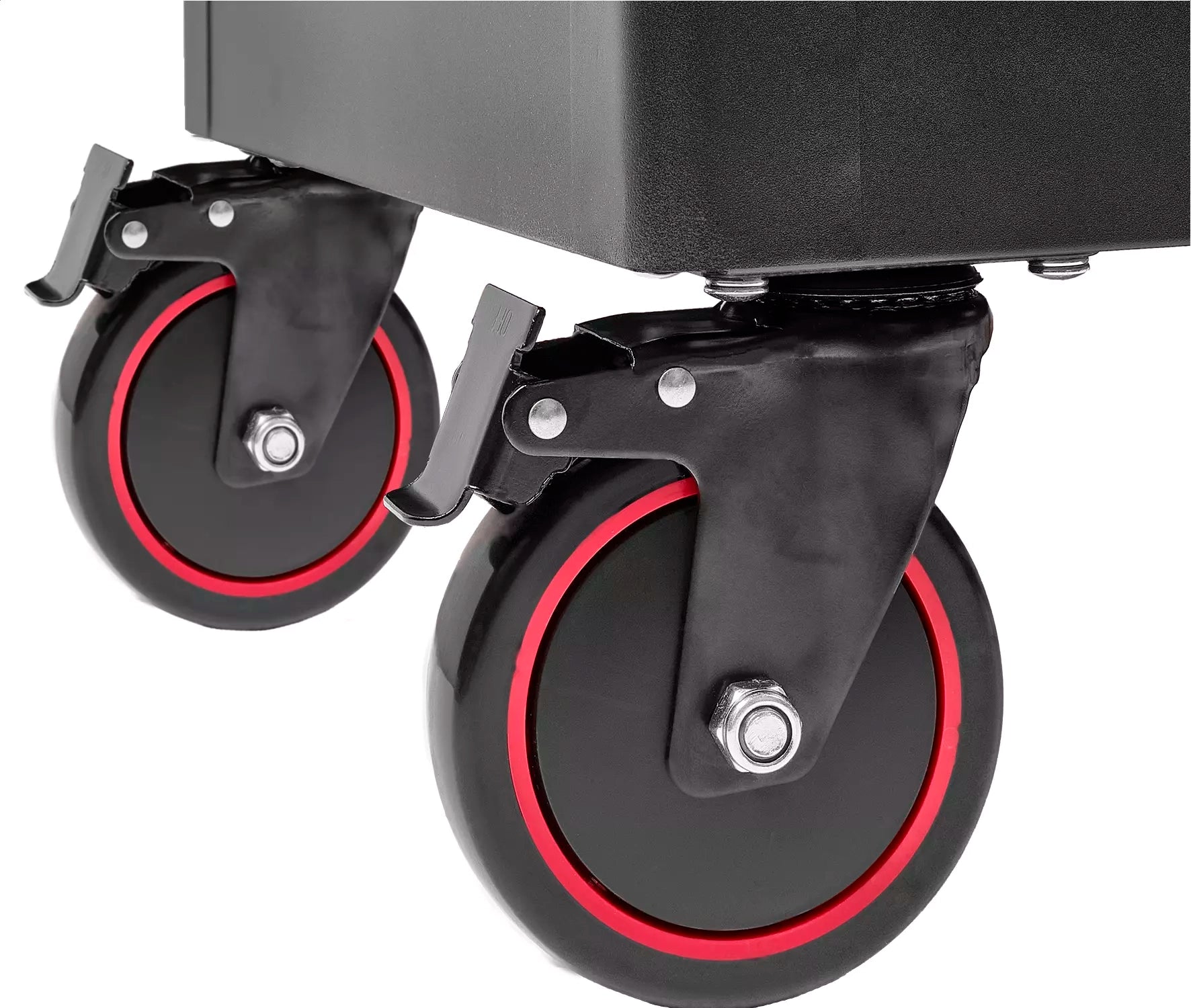 - Four wheels , two of which are swivel with parking brakes for mobility and stability on any surface